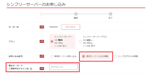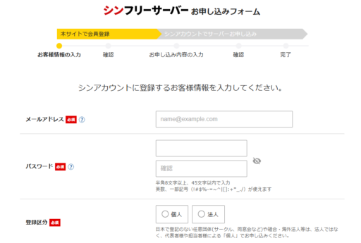続けて「シンフリーサーバ―」の申し込みを進めます。